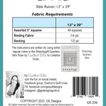 Easier than it looks, Lil' Mia is made with 5" squares  and the Stripology Quarters Mini Ruler. Full color instructions include how to use regular rulers as well. Size 13" x 39".