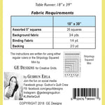 This table runner comes together much easier then it looks using the Stripology Squared Mini Ruler and 5" fabric squares, plus some background. Full color instructions include how to use regular rulers as well. Size 18" x 39".