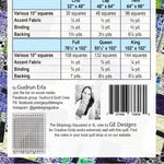 This fun, geometric pattern is much easier to make than it looks.  The pattern has 6 different size options. Make it with assorted 10" squares and an accent fabric, we recommend using the Stripology Squared or the Stripology XL ruler by GE DesignsInstructions for using regular rulers are included. The pattern comes with 6 different size options: crib, lap, twin, full, queen, king.