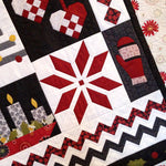 Nordic Christmas is a very Scandinavian inspired Christmas quilt with a modern spin. It combines some of the motifs I grew up with around the Christmas season like the 4 advent candles, folded paper hearts we used to make and the very traditional Scandinavian snowflake found in knitting and embroidery. The fabric used in the quilt is from the Nordic Visions fabric line by GE Designs for Red Rooster Fabrics, available in stores in June 2013.