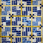 A bold and striking quilt with a modern, masculine look. The pattern comes with 4 different size options. The blocks are large and simple using 2-1/2" strips or Jelly Rolls.
