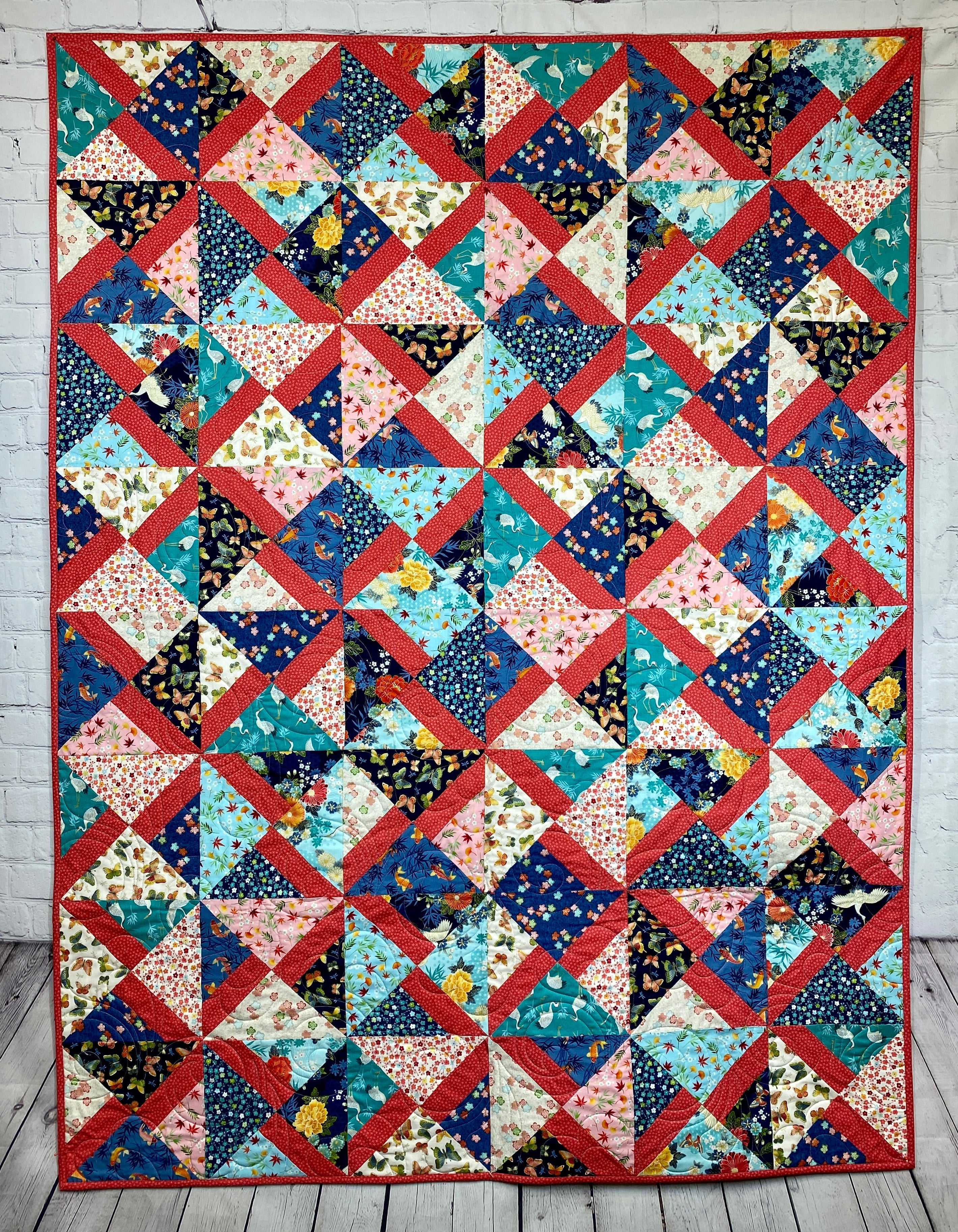 This quilt uses assorted 10" squares and innovative piecing and cutting with the Stripology Squared ruler by GE Designs. Instructions for using regular rulers are included. The pattern comes with 6 different size options: crib, lap, twin, full, queen, king.