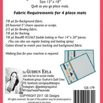 A quilt as you go Place Mat pattern using charm squares and made with a Quilt As You Go method. Pattern is written for 4 place mats, Size 13" x 18".